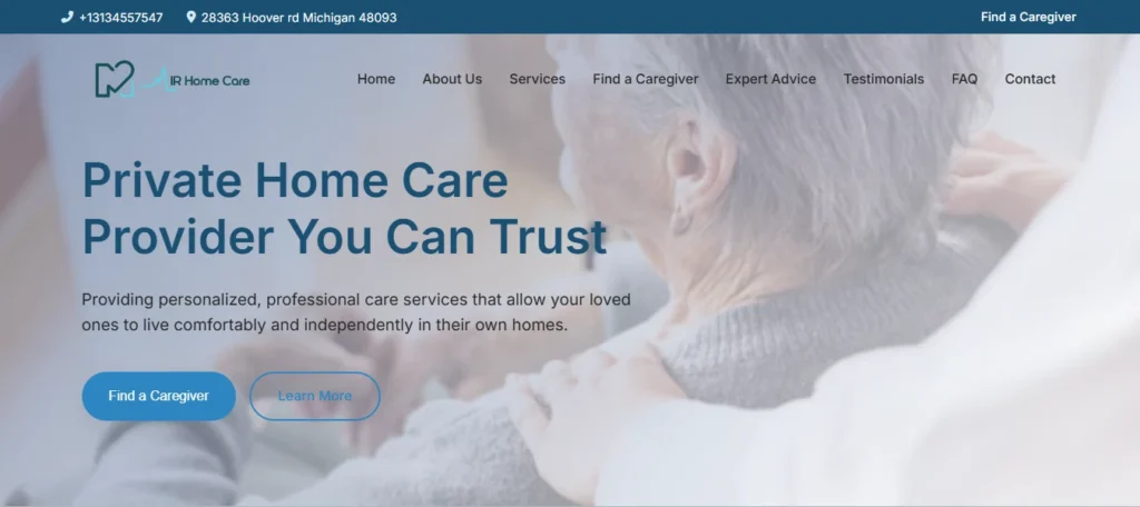 Built to establish trust with families seeking care, this responsive service website presents compassionate caregiving solutions with a warm layout, clear service sections, and easy caregiver contact flow.